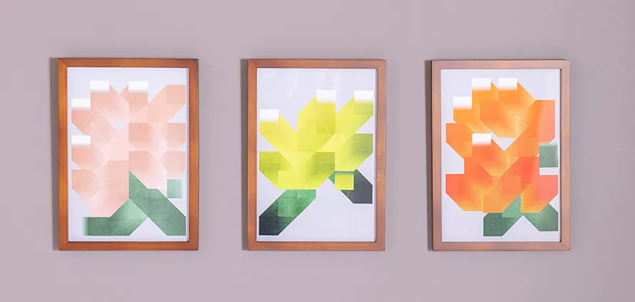 The artwork throughout the house is by UESATSU, inspired by imaginary flowers. Surrounded by the green forest outside, these abstract blossoms invite you to consider—which feels more real, the nature before your eyes, or the ones blooming in your imagination?