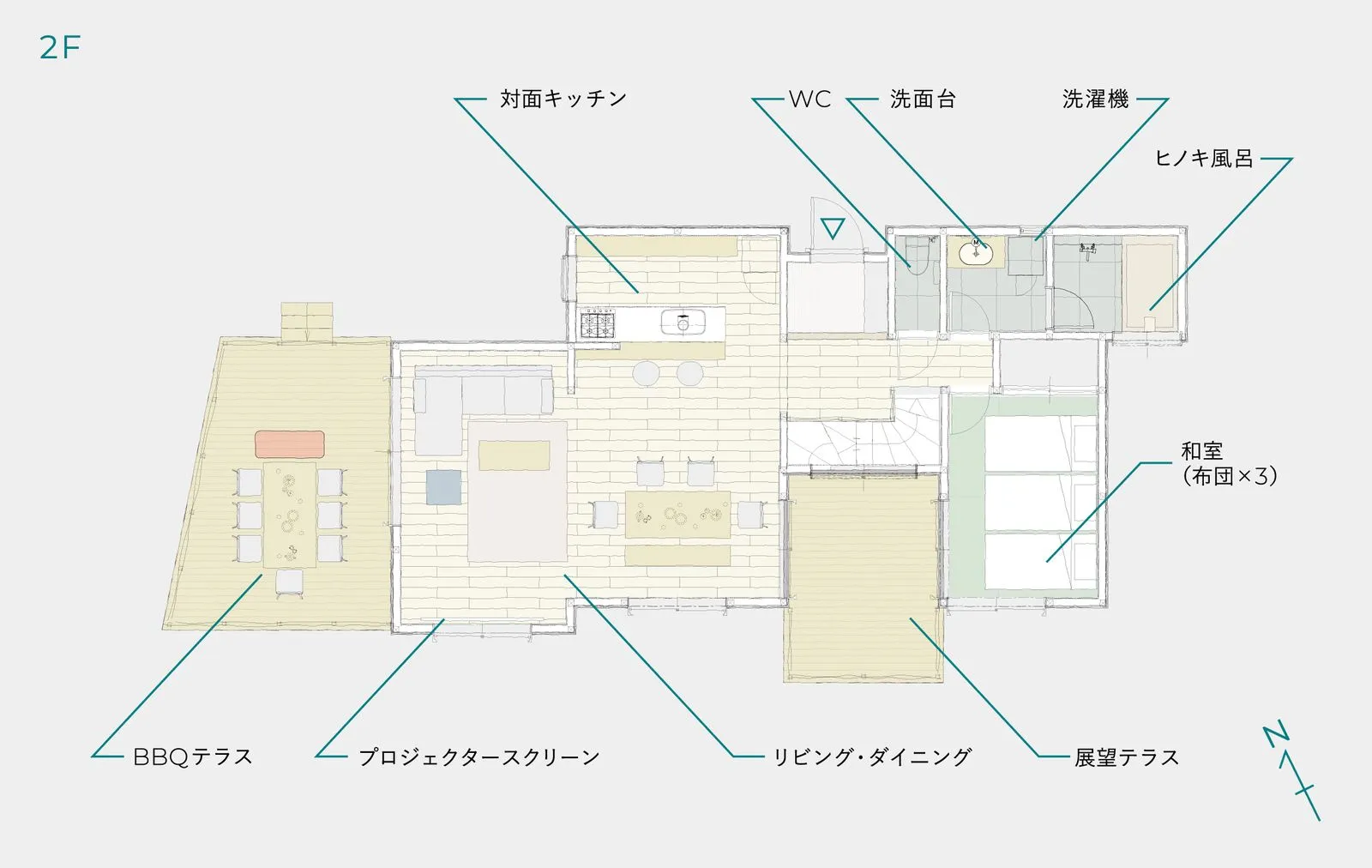 Whether you seek quiet moments of healing in the cypress bath and sauna terrace, or joyful gatherings on the BBQ terrace or in front of the 100-inch theater screen—this is a home for all kinds of time.