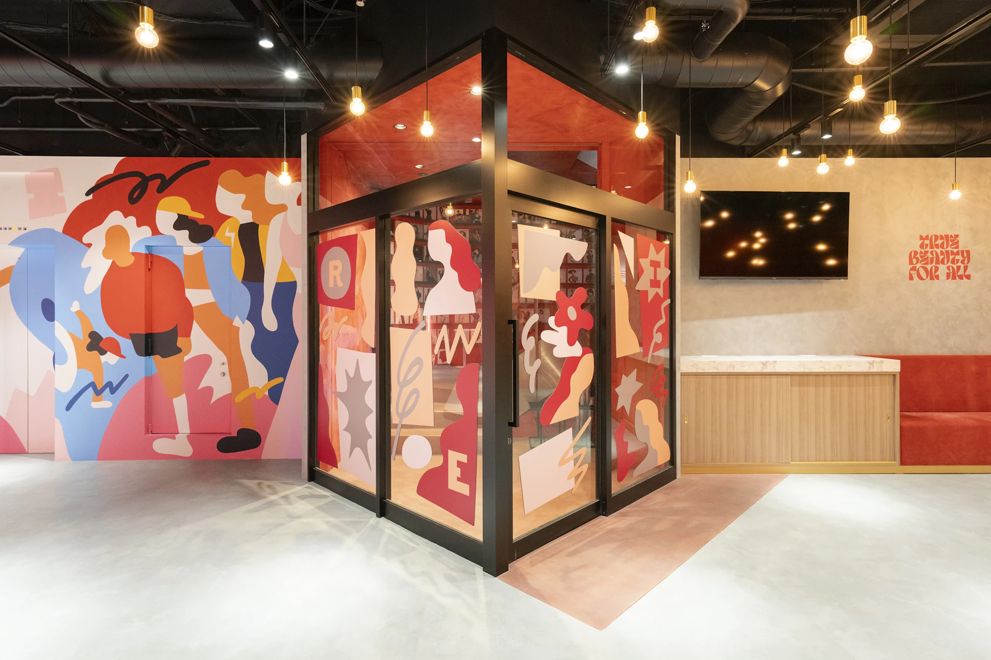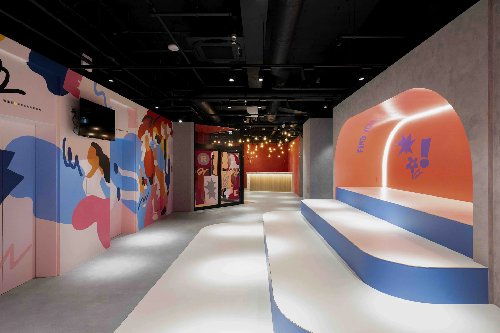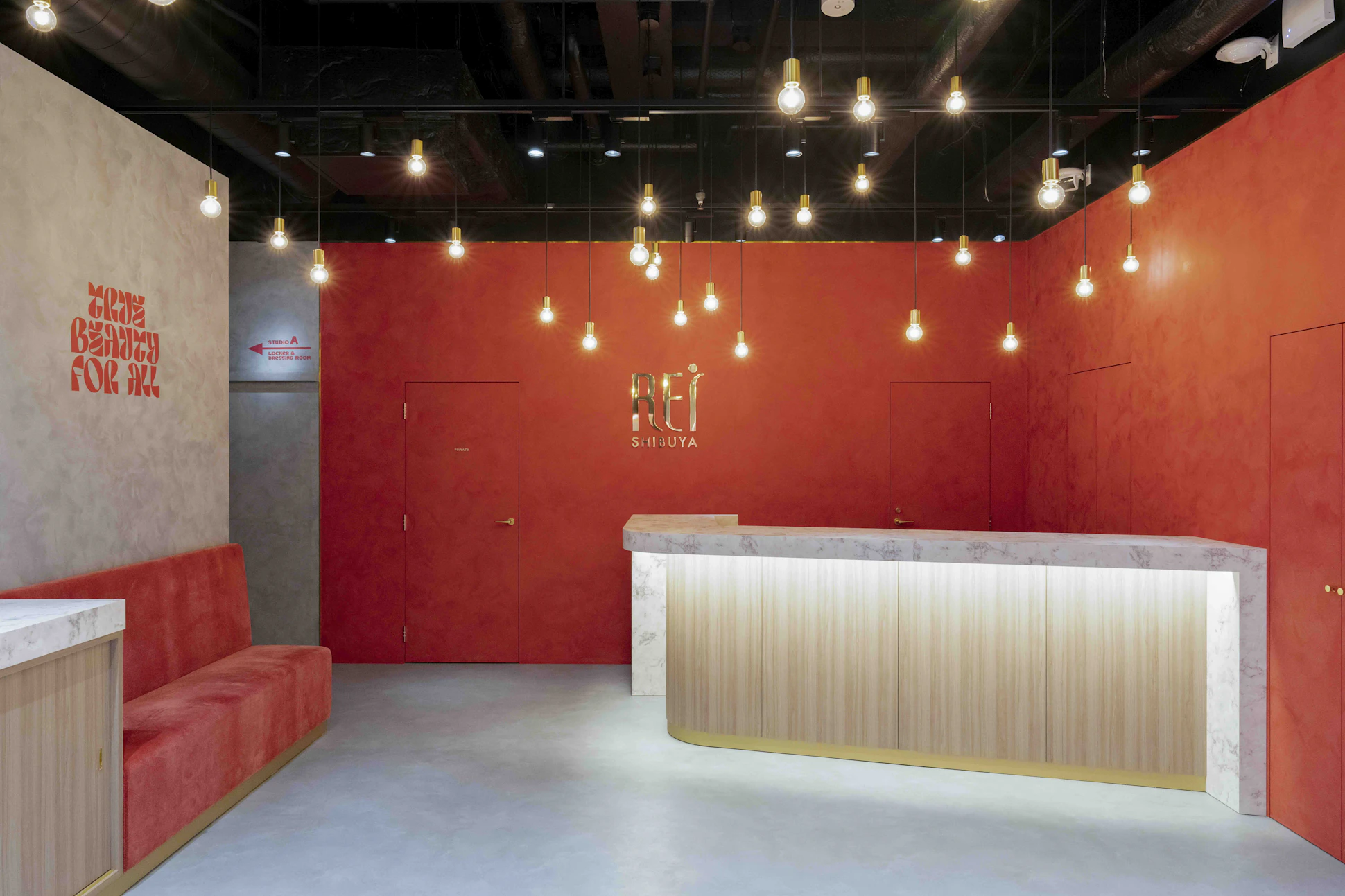 エネルギーに満ちた渋谷の中心地に位置する旗艦校の移転プロジェクト。4つのスタジオは、それぞれテーマカラーや面積に応じて異なる雰囲気を持たせつつ、全体としてREIブランドの統一感が感じられる構成に。