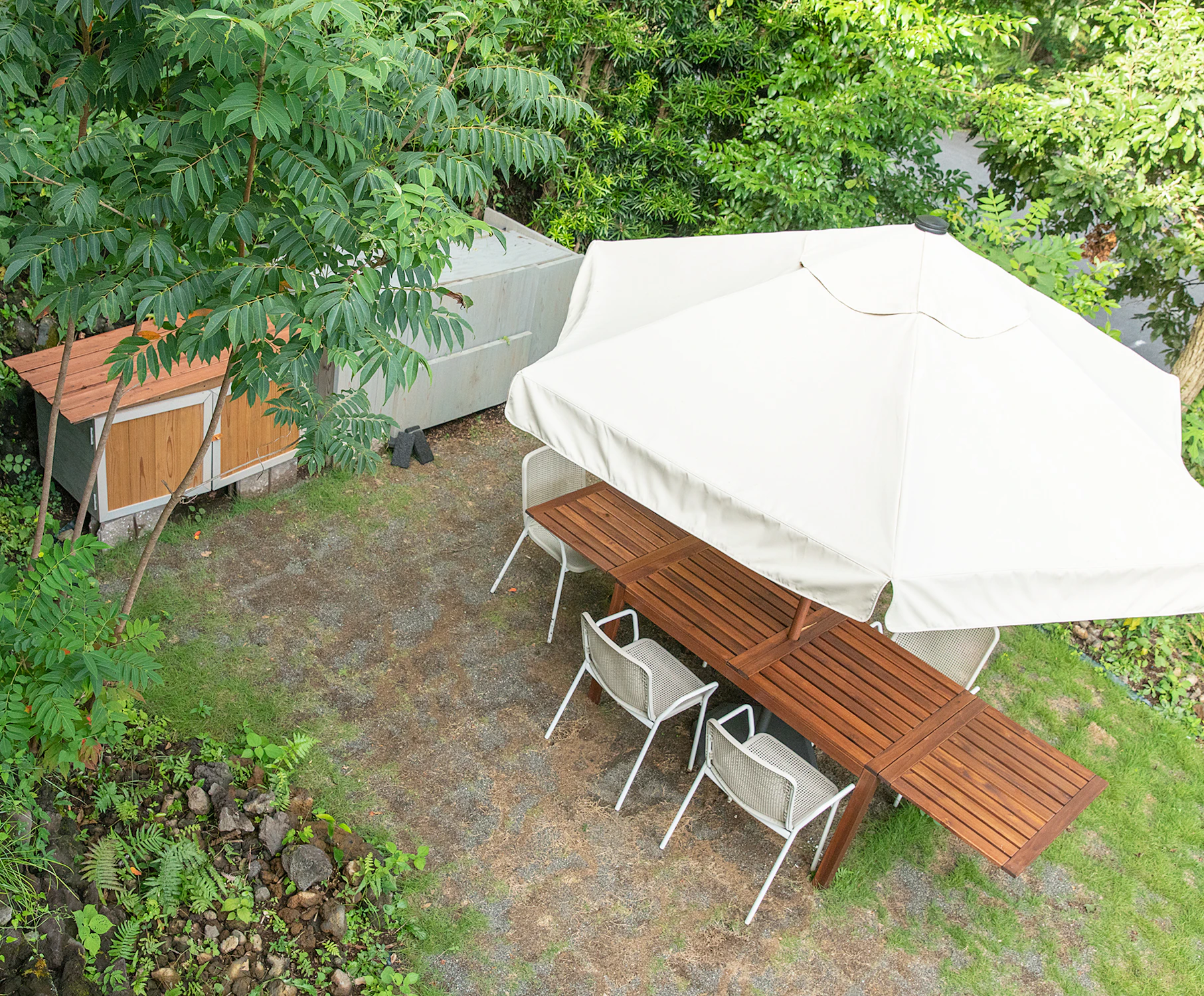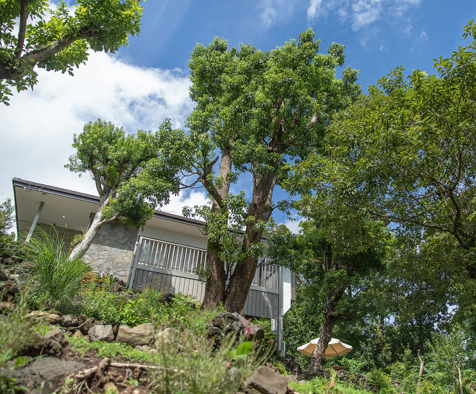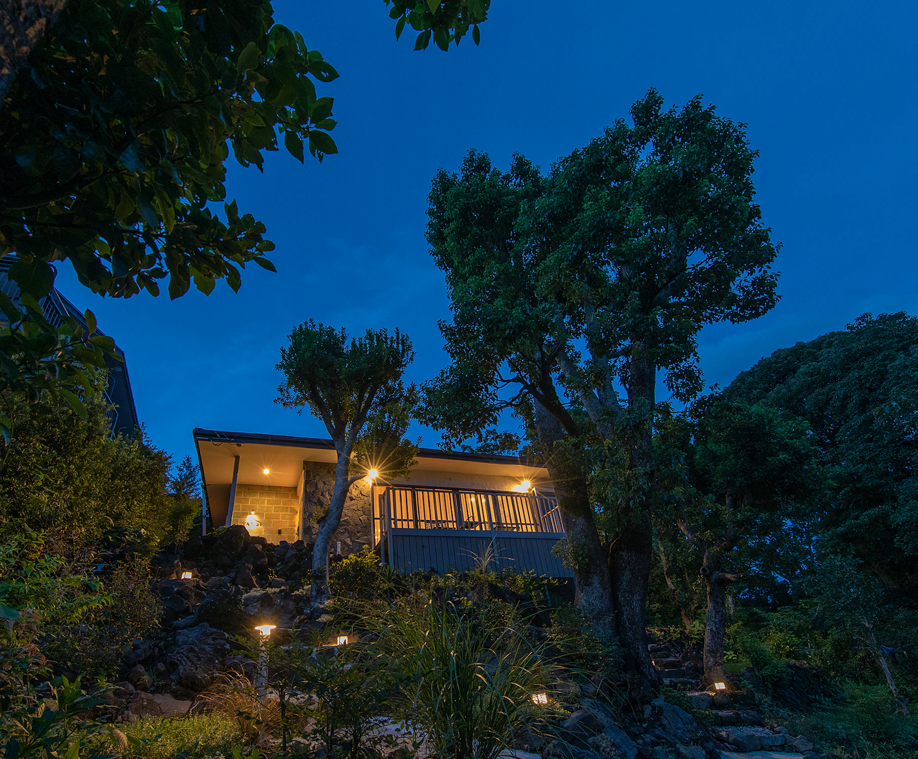 樹齢を重ねたクスノキや溶岩石を生かしたロックガーデンが広がる外部空間の魅力も、最大限引き出しました。昭和モダンを感じる素材やディテールを残しつつ、機能性と快適性を備えた空間で、ゲストに特別な体験を提供します。
