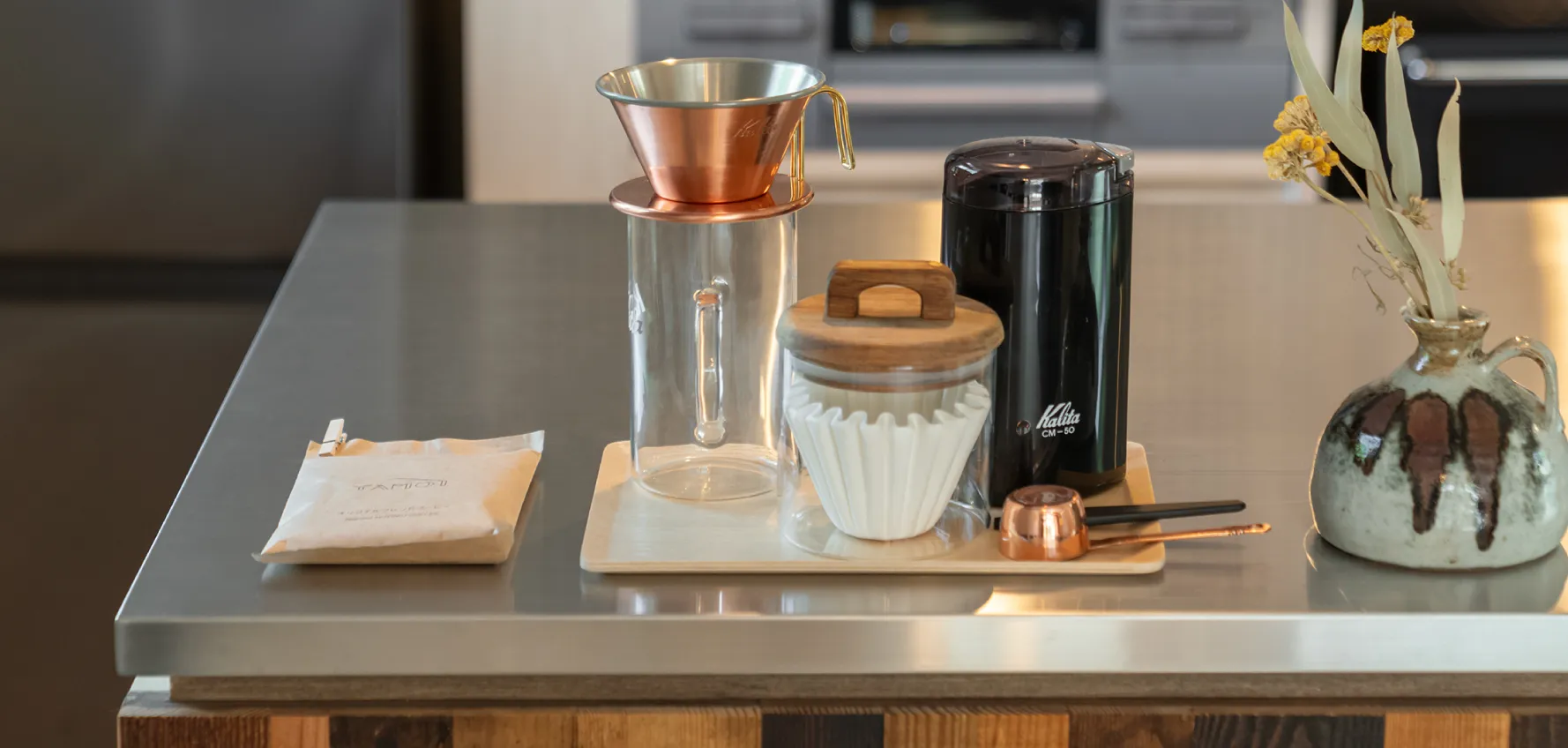 香りに包まれ、珈琲をペーパードリップする優雅な時間を過ごして。お一人2杯分、YAMOオリジナルのコーヒー豆をご用意しました。